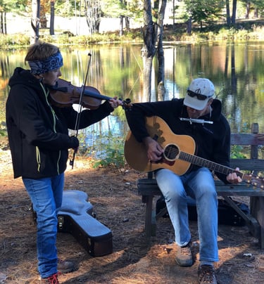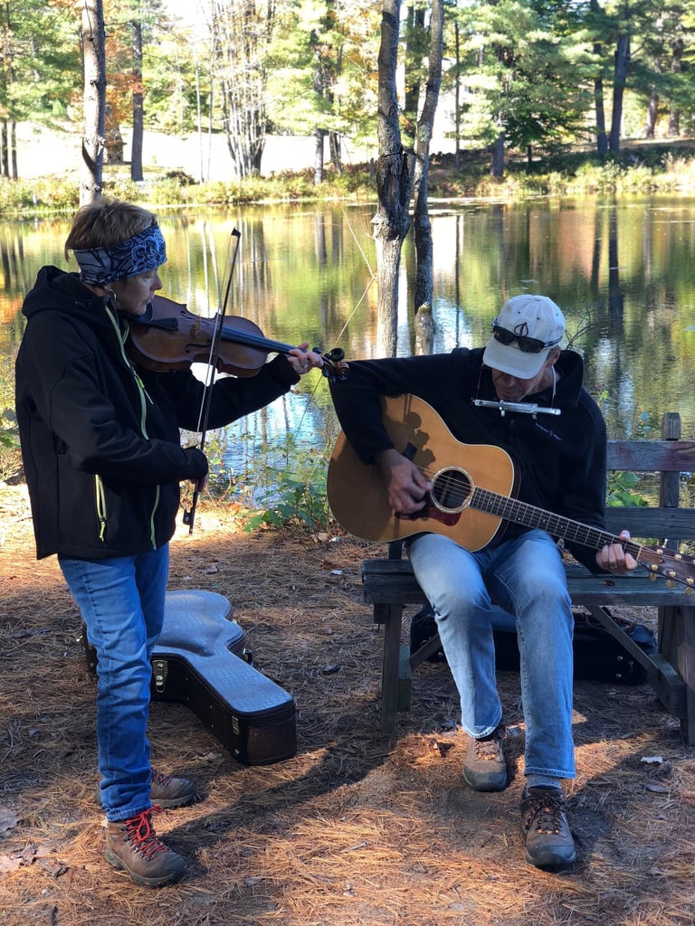 We love to play traditional music -- Irish, Scottish, Breton, and a host of other styles -- on fiddle and guitar, with a few vocal tunes on occasion.